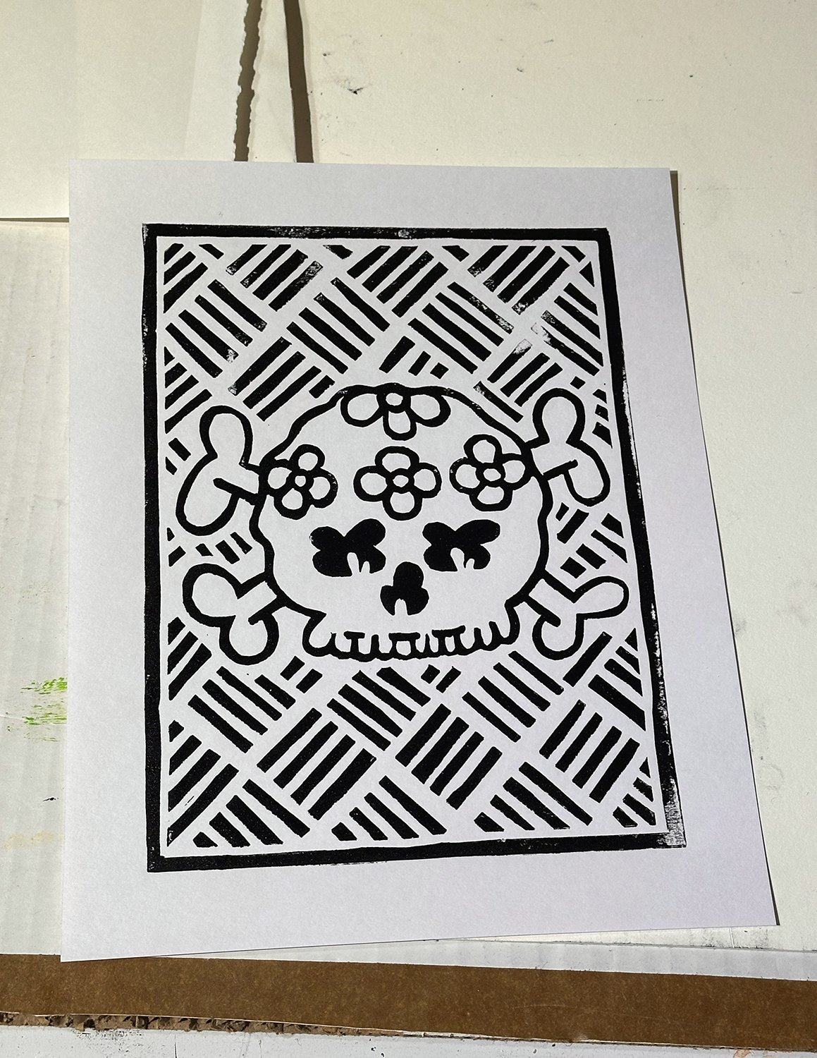 This 11 × 8.5 inch Ofrenda linocut print is hand-printed using rich black Cranfield relief ink on BFK Rives printmaking paper, known for its soft texture and archival quality. Each print is pulled by hand, resulting in subtle variations that make every impression uniquely its own.